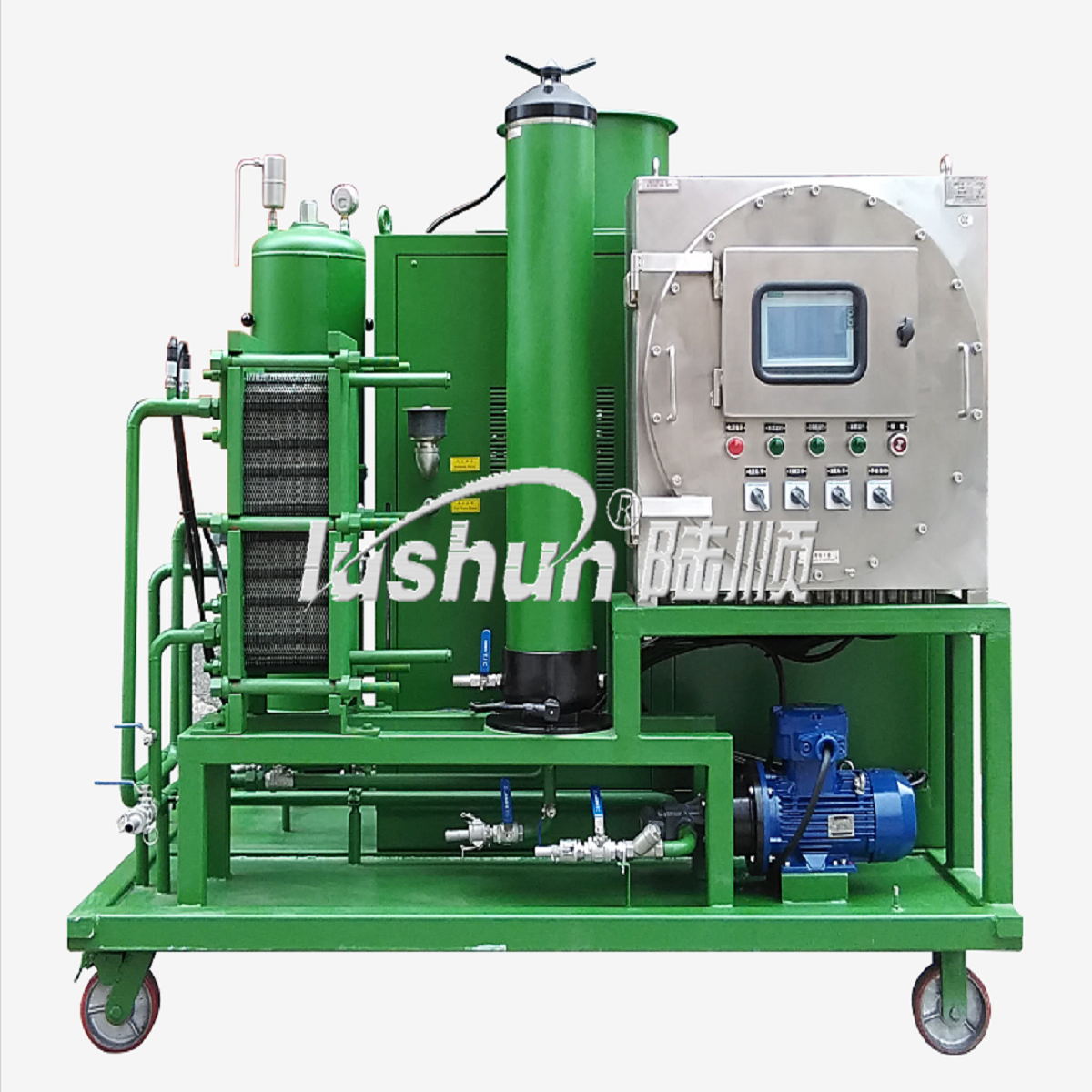 VRP除膜凈油機(jī)。實(shí)現(xiàn)了革命性的高效去除油品中的軟性污染物(溶解態(tài)和懸浮態(tài))甚至包括高溫操作下的燃?xì)廨啓C(jī)和蒸汽范機(jī)、壓維機(jī)。溫?zé)岬挠捅辉O(shè)備自帶的傳輸泵從油箱底部的*低點(diǎn)抽取到VRP漆膜凈油機(jī)中。經(jīng)過降溫處理后(利用膜凈的熱穩(wěn)定性比油差的特點(diǎn))經(jīng)過以木質(zhì)纖維為原材料的濾芯(不需要使用離子交換樹脂濾料,大大節(jié)約使用成本) ,去除漆膜、顆粒物和水分。