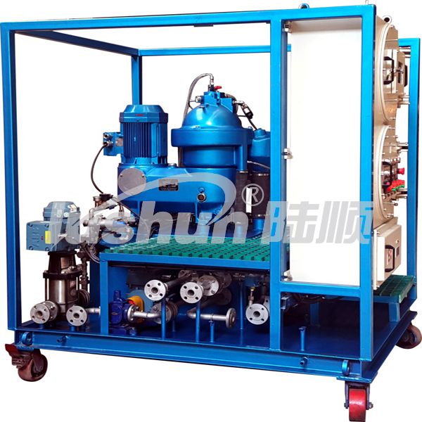 混合液在重力或離心力場(chǎng)中,對(duì)具有不同密度且互不相溶的輕、重液相和固相,可分別獲得不同的力,從而分離分層,在重力場(chǎng)中稱為重力分離,在離心力場(chǎng)中稱為離心分離。待處理的油品通過(guò)進(jìn)油管進(jìn)入轉(zhuǎn)鼓,分配器將油引向轉(zhuǎn)鼓的外周。當(dāng)達(dá)到分配器的分配孔時(shí),未分離的油便會(huì)從碟片組邊緣弧形孔形成的通道上升,并在該處被平均分配到碟片組中。在向轉(zhuǎn)鼓中心流動(dòng)的同時(shí),油便會(huì)連續(xù)不斷地與水和油渣分離開來(lái)。當(dāng)離開碟片組時(shí),凈化后的油便會(huì)上升并進(jìn)入向心泵腔室。接著油被向心泵從向心泵腔室抽出,然后從出口處離開轉(zhuǎn)鼓。被分離出來(lái)的水和油渣移向分離筒的外周。當(dāng)進(jìn)行凈化時(shí),被分離出來(lái)的水將沿著碟片組的外側(cè)上升,穿越碟片頂蓋上部的通道及轉(zhuǎn)鼓蓋上的孔,進(jìn)入重相泵室腔,由重相泵齒輪泵泵出。較重的雜質(zhì)聚集到碟片組外側(cè)的油渣空間中,并按一定的間隔時(shí)間(根據(jù)含渣量)從油渣口排出。通過(guò)上述工作周期,完成一個(gè)工作循環(huán)。經(jīng)過(guò)多次循環(huán)處理,可以迅速去除油中水分和雜質(zhì)的目的,從而滿足客戶需求。